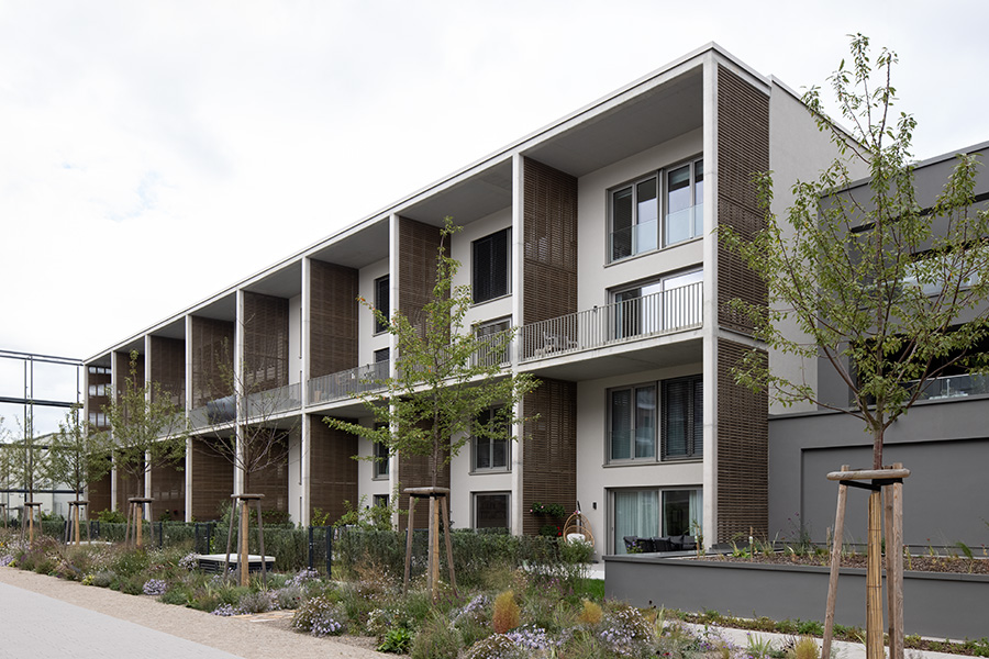 Auf dem innerstädtischen Areal eines ehemaligen Emaillierwerks entsteht ein neues Stadtquartier. Es sind 800 Wohnungen, Gewerbeflächen, Kindertagesstätte und Ausstellungsraum geplant. Der Städtebau bildet 7 Hofstrukturen aus, die um eine gemeinsame grüne Quartiersmitte angeordnet werden. Der erste Bauabschnitt sieht die Erstellung von 150 Wohneinheiten und kleinere Gewerbeflächen vor. Im Rahmen der Mehrfachbeauftragung sind Bilger Fellmeth verantwortlich für die Planung von fünf Gebäuden: Turmhaus, Torhaus, Maisonettzeile, Hofhaus und Pergola. Die Bauten leiten Form und Gestus aus ihrem jeweiligen Programm ab. Detaillierung, Material und Farbe prägen die Unterschiedlichkeit der Gebäude weiter aus. Es entsteht so im Quartier ein Dialog zwischen unterschiedlich anmutenden, dennoch doch im Wesen verwandten Wohnbauten. Die Verwendung glasierter Keramik als Fassadenbekleidung verweist auf die Herstellungsprozesse des vormaligen Emaillierwerks. Mehrfachbeauftragung mit Kuehn Malvezzi Florian Krieger - Architektur und Städtebau Bilger Fellmeth realisieren im ersten Bauabschnitt 9.200m² Bgf, 52 Wohnungen Fotografie Felix Krumbholz