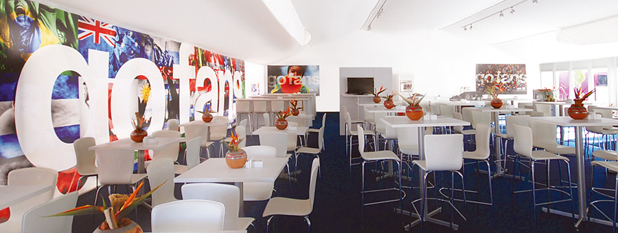 Temporäre Innenraumgestaltung für Lounges und Hospitality Bereiche in den Stadien und auf den Außengeländen für die Dauer der Weltmeisterschaft. Die Planung umfasst die Anordnung der temporären Zeltstädte, Umnutzung der Stadionlounges, Eventsignage und Interiors für verschiedene Gästekategorien. Anforderungen der Logistik, Sicherheit, Orientierung, Flexibilität und Modularität bestimmen maßgeblich die Entwürfe. Es wurde eine modulare Kollektion von Möbelelementen aus recyclingfähigem Leichtbaumaterial entwickelt. 16.000 m² Bgf, 10 Spielorte