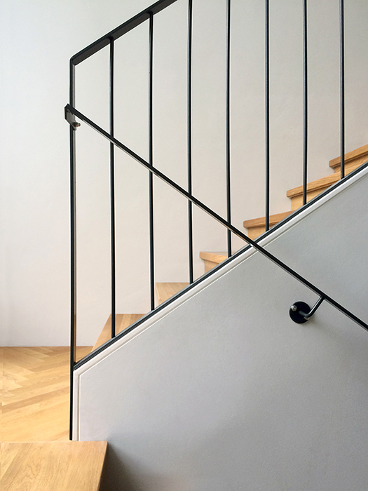 Wohnhaus für eine Familie. Das Gebäude ist von typologischer Einfachheit. Sein Gestus orientiert sich, in Bezugnahme an die bauliche Umgebung, an der schlichten Eleganz der Villenarchitektur der 20er Jahre. Die Innenräume wurden mit möglichst großer geometrischer Klarheit geordnet. Fließende Raumfolgen und tiefe Sichtbezüge erlauben ein modernes, offenes Wohnen. Wertige Materialien und Details im Innenraum sind auf eine charaktervolle freie Möblierung abgestimmt. 850 m² Bgf